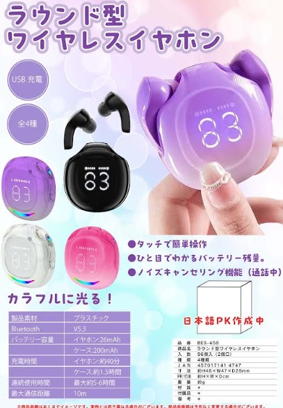 カラフルワイヤレスイヤホンミニ 全8色アソート 96個入り BES-427