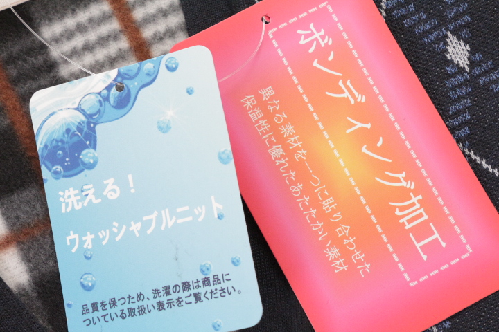 | 素材 | ポリエステル100% ボンディングニット 12Gウオッシャブルニット+チェックフリース |