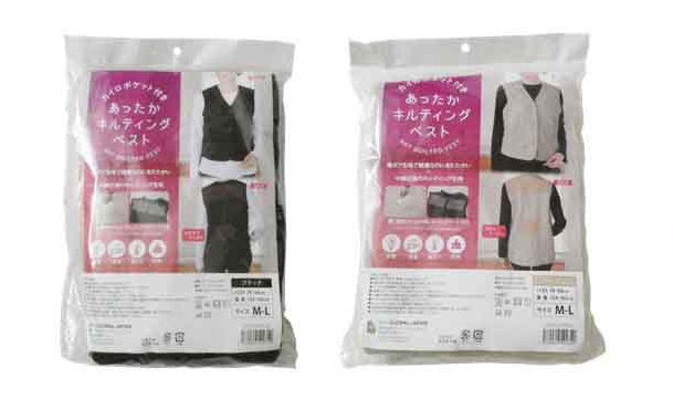 カイロポケット付きあったかキルティングベスト ブラック 20個 4570060544333 / ベージュ 20個 4570060544364