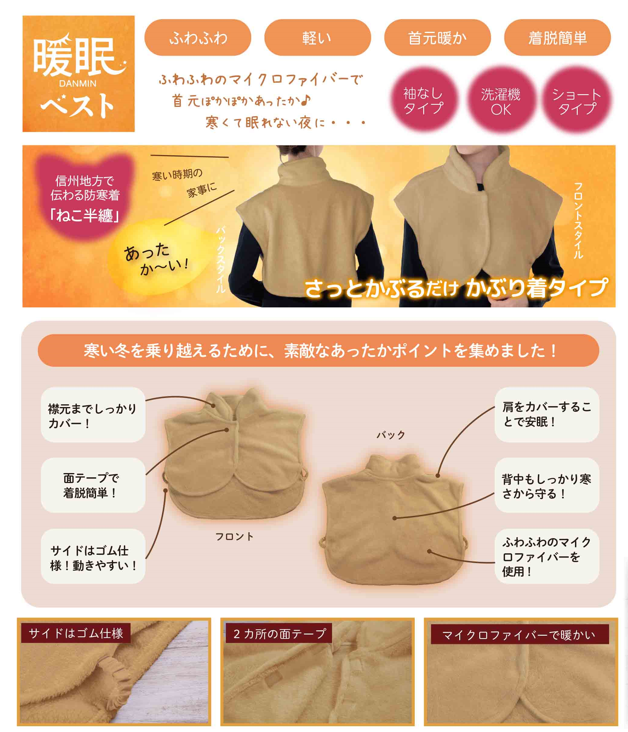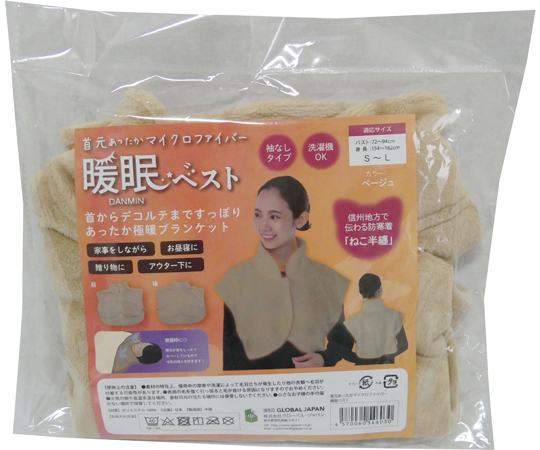 首元あったかマイクロファイバー暖眠ベスト ベージュ 100個 4570060546030