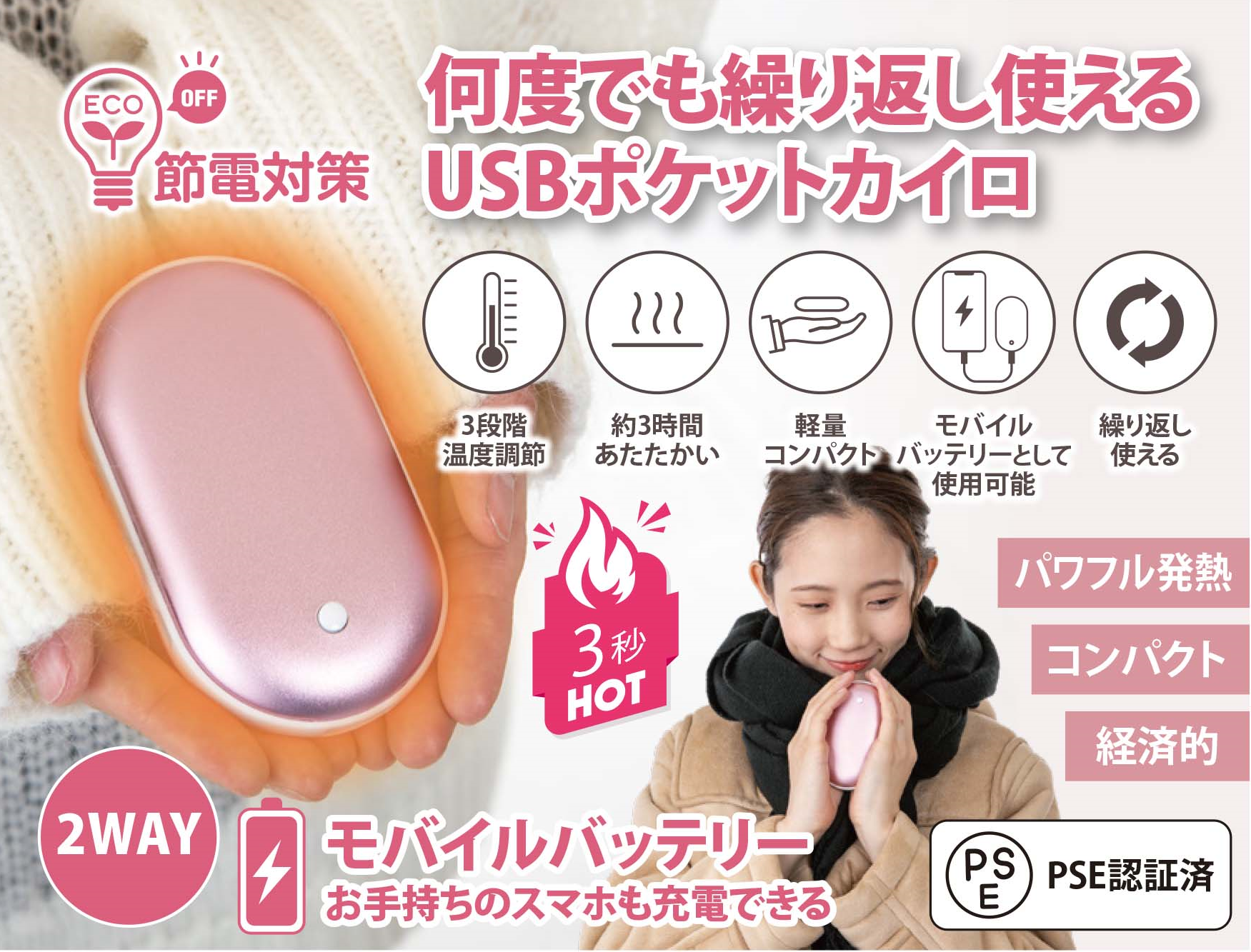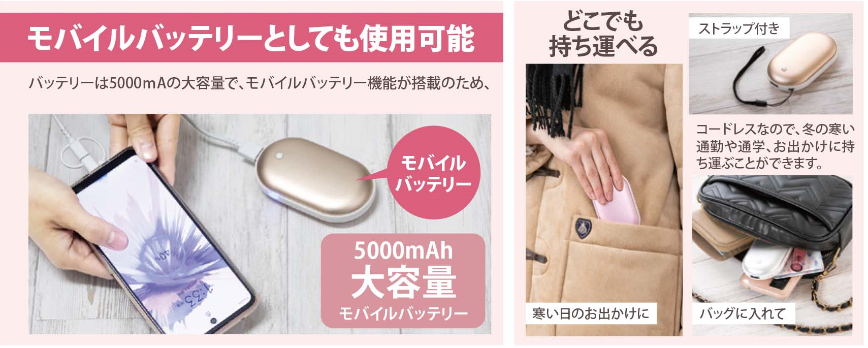 お財布にも環境にもやさしい!何度でも繰り返し使えてスマホの充電もできる電気カイロです。