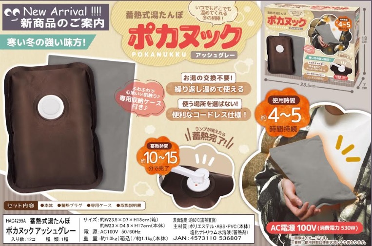 蓄熱式湯たんぽポッカヌック 全2色 24個入り HAC4298A・HAC4299A