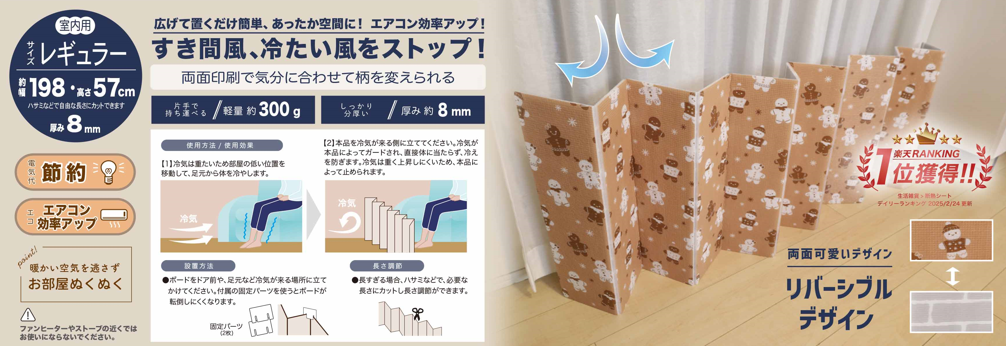 広げて置くだけ簡単 あったか空間に! すき間風、冷たい風をストップ!
