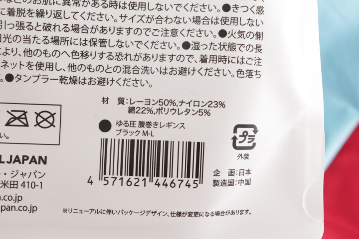 素材 | レーヨン50% ナイロン23% 綿22% ポリウレタン5% |