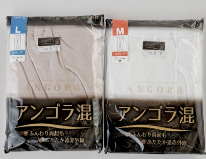 紳士 アンゴラ毛混 長袖U首/ズボン 20個入り 1003403331・1003403341