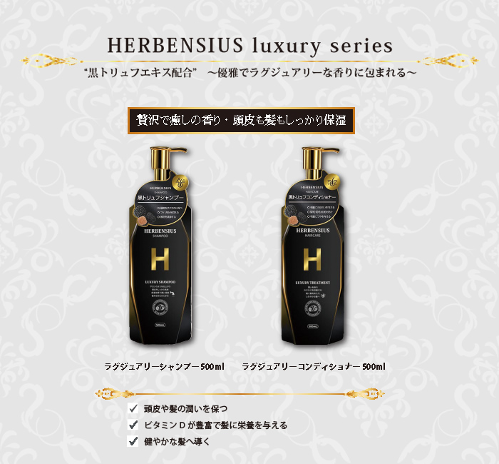 HERBENSIUS ラグジュアリー シリーズ シャンプー・コンディショナー・ボディーソープ・歯磨き粉 各種ケース販売!