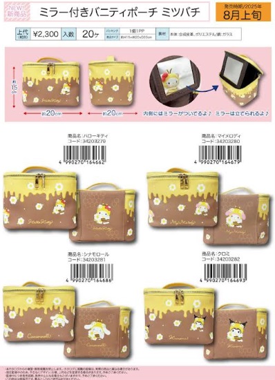 サンリオ おでかけ2WAYポシェット/ポケット付きリールパスポーチ/ミラー付きバニティポーチ ミツバチ 全4種アソート 20~30個入り 33203295~33203298/34203275~34203278/34203279~34203282