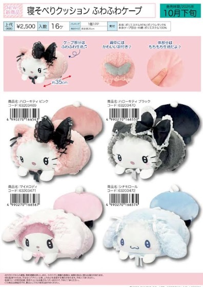 サンリオ ふわふわケープ 寝そべりクッション ミニ/寝そべりクッション 全4種アソート 16~26個入り 63203465~63203468/63203469~63203472