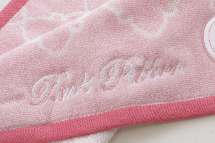 ピンクリボンデザインのタオルです。シンプルで使いやすいタオルです。