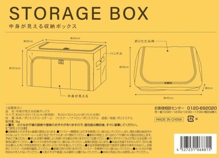 サイズ | 約40×30×19.5cm(使用時) 約40×30×2cm(折りたたみ時) |