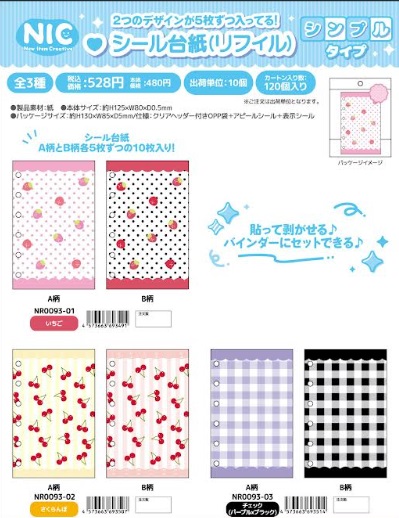 シール台紙 (リフィル) もこもこタイプ/シンプルタイプ 全3種アソート 120個入り NR0092-01~03/NR0093-01~03