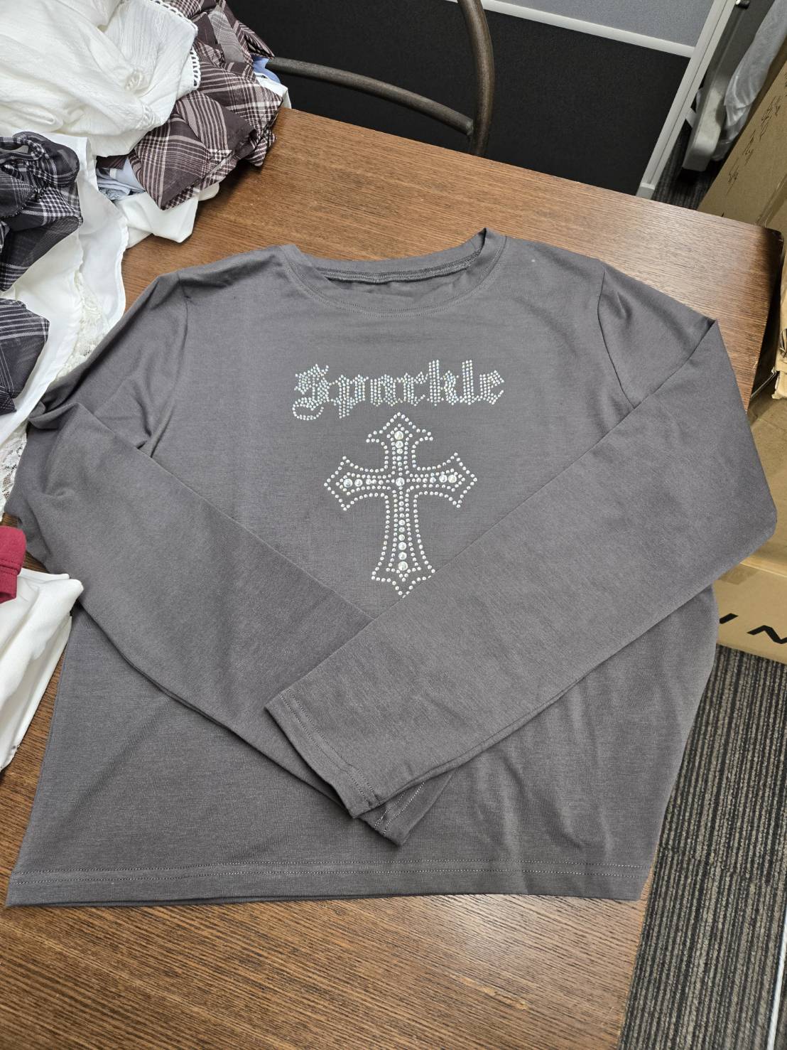 ・Backラインストーンクロス裏毛チュニックパーカー 約220枚