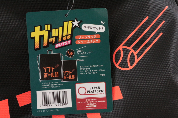 タオルのマルシンから現地買付特価品! 新体操部&ソフトボール部 ナップサック&シューズバッグセット 104組だけ!