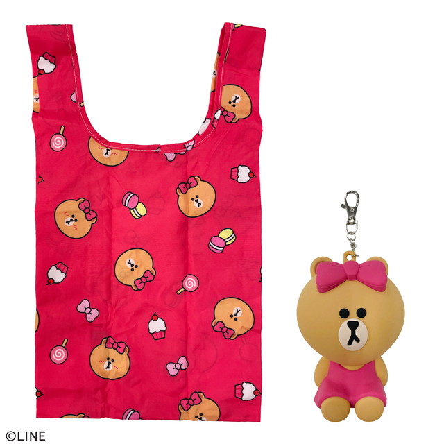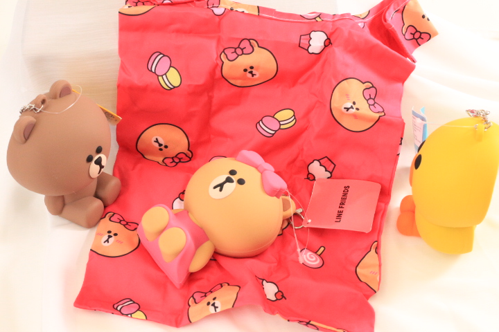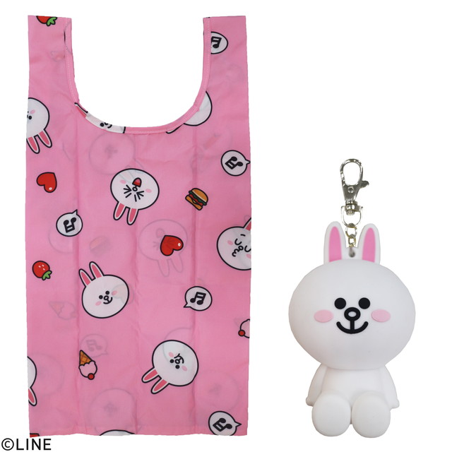 タオルのマルシンから現地買付特価品! LINE FRIENDS ラインフレンズラバーケース付きエコバッグ4種類 40個セット!