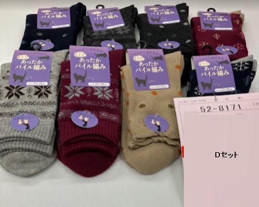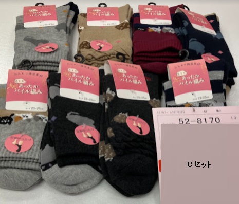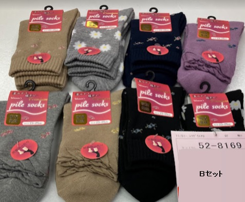 婦人 綿混パイルクルーソックス A/B/C/D 100足入り 52-8168・52-8169・52-8170・52-8171