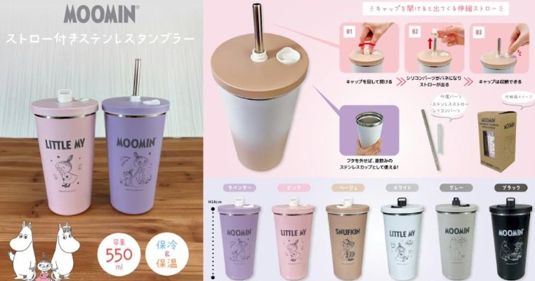 スヌーピー/ムーミン ストロー付き ステンレスタンブラー 550ml 全6柄アソート 36個入り SN-070・MM-646