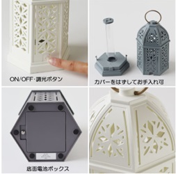 機能:LEDライト(2700K電球色)、無段階調光、吊り下げリング付き、