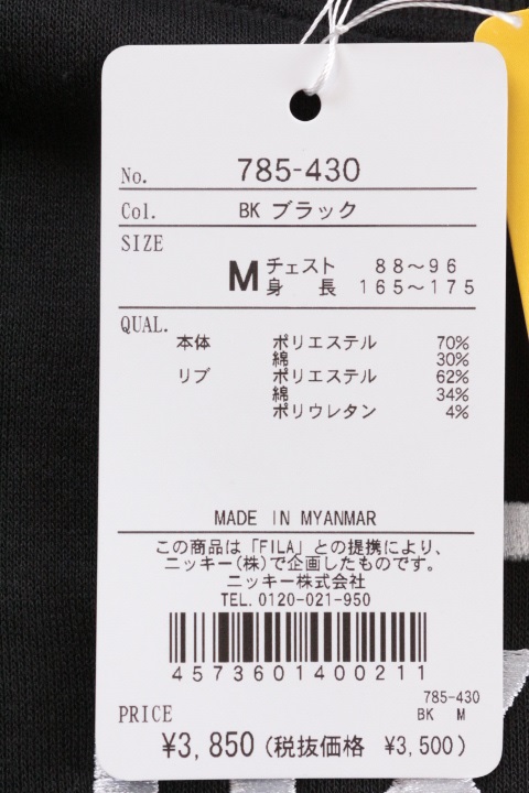 【FILA】フィラ メンズ/レディース 裏起毛スウェットトレーナー 全3色アソート 20枚入り 785430・795430