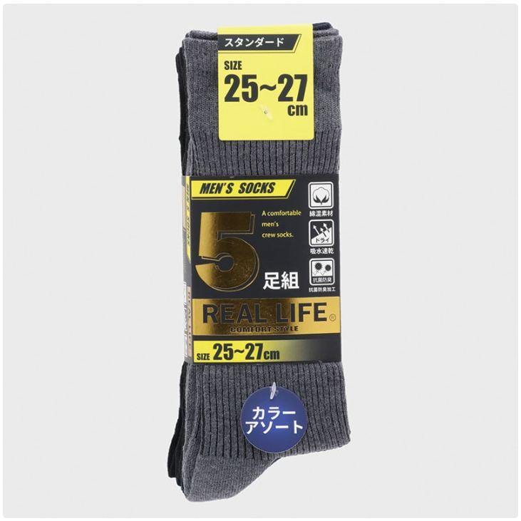 紳士綿混リブクルーソックス5足組(黒)25-27cm 50個 310222 / 紳士綿混リブクルーソックス5足組(黒)27-29cm 50個 310223 / 紳士綿混リブクルーソックス5足組(3色)25-27cm 50個 310224 / 紳士綿混リブクルーソックス5足組(3色)27-29cm 50個 310225