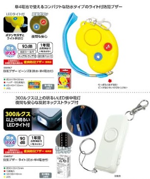 防犯ブザー キューブ/レモン/レモンⅡ/ビーンズⅡ/ライト タイプ (防水・単4電池付) 30個入り 36533・3952・3945・3967・4059