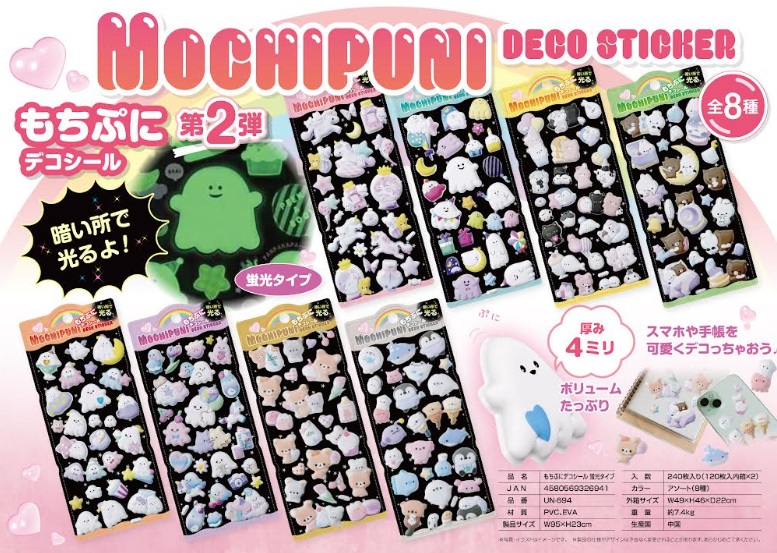 もちぷにデコシール ノーマルタイプ/蓄光タイプ 全8種アソート 240個入り 4580569326903・4580569326941