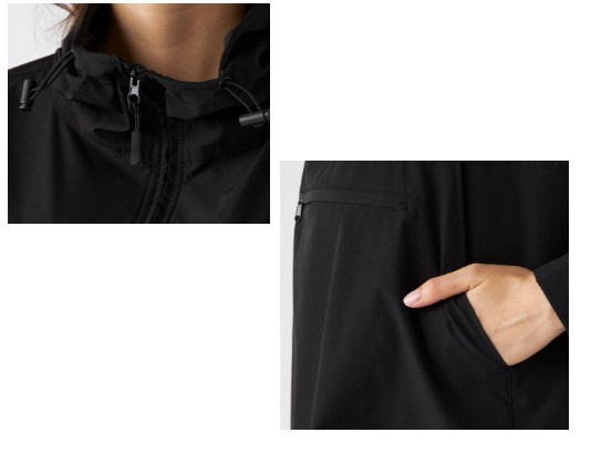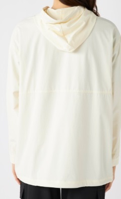 フード付きデザインに加え、フードと裾にはドローコードを配し、シルエットやフィット感を好みに合わせて調整可能。