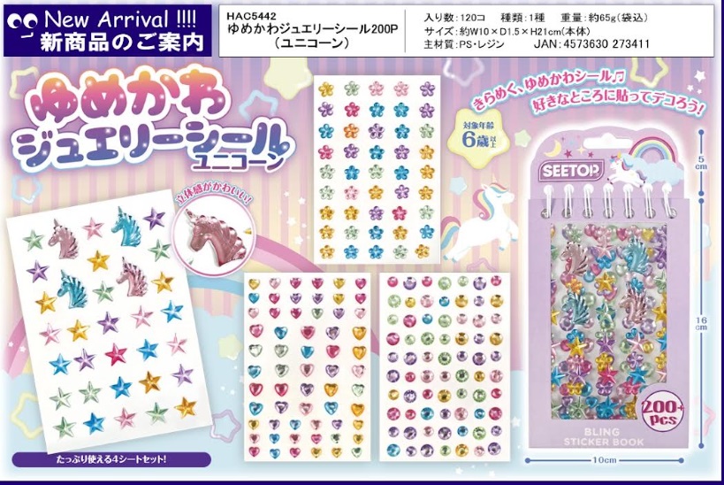 キラかわジュエリーシール 200P ベア/ユニコーン 120個入り HAC5443・5442