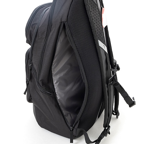クッション性の高い背面部には、タブレットなど入れられる便利なスペースも。