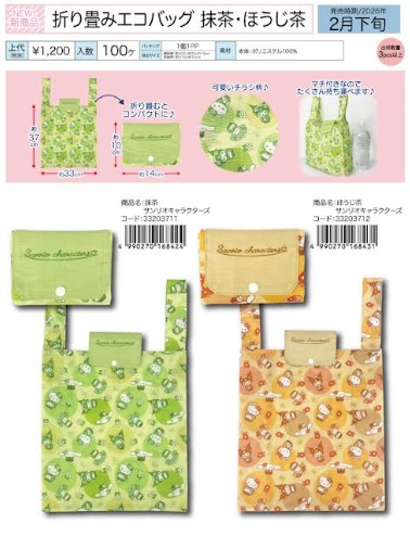 ハローキティ マルチ収納6点セット/折り畳みエコバッグ 抹茶・ほうじ茶 全20~40個入り