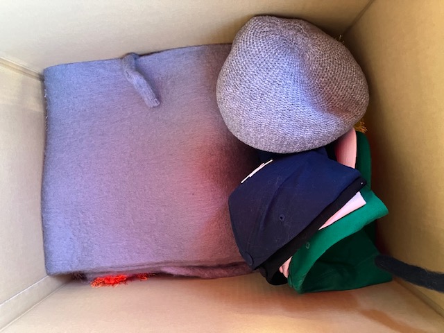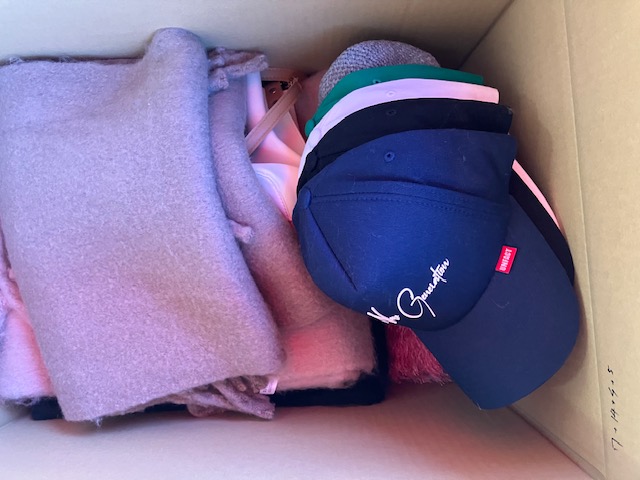 マフラー、バッグ、キャップなどが混み混み
