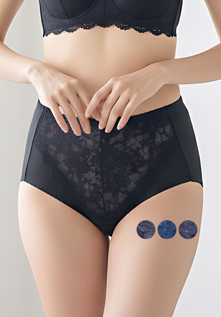 ①綿混フロントレースショーツガードル