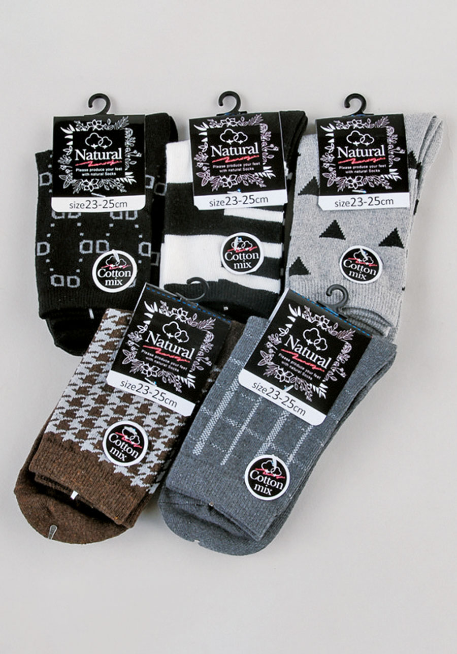 ② モノトーン柄クルーソックス