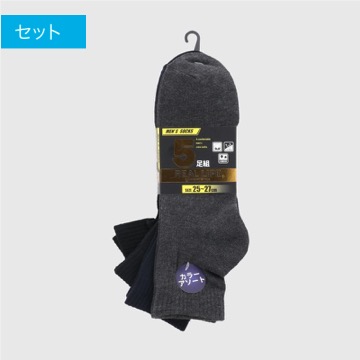 紳士 綿混スニーカーソックス 5足組50セット 3種