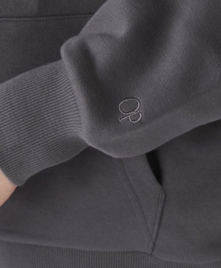 ネックウォーマー付裏毛パーカープルオーバー。しっかりリブがシルエットをより可愛く見せます。