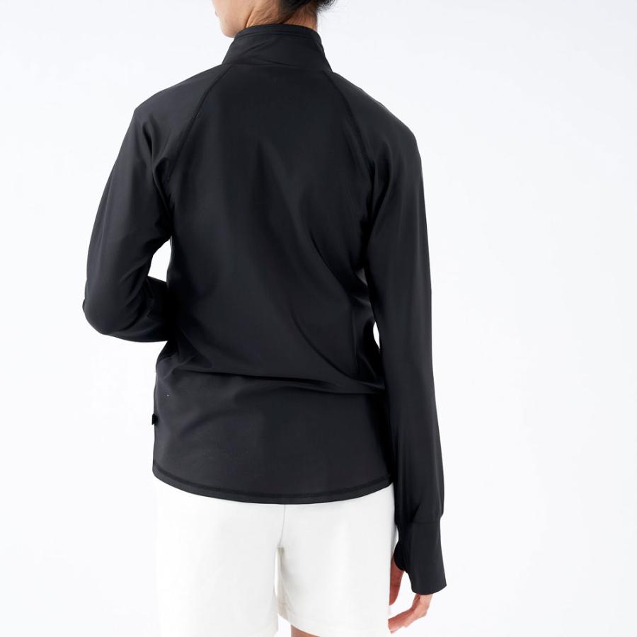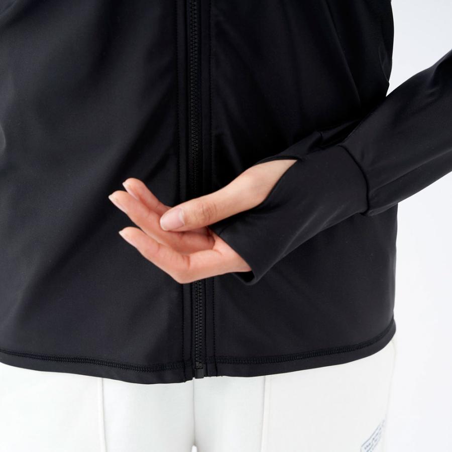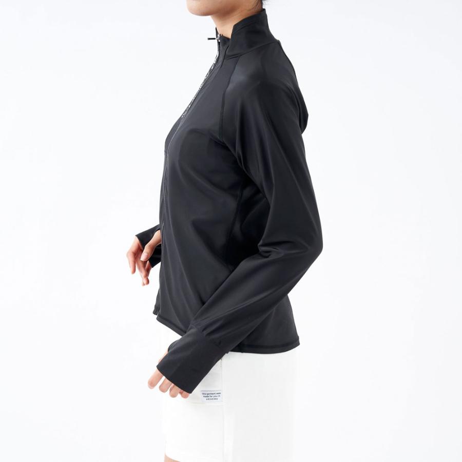 2way方向によく伸びる速乾無地素材のフルジップジャケット。
