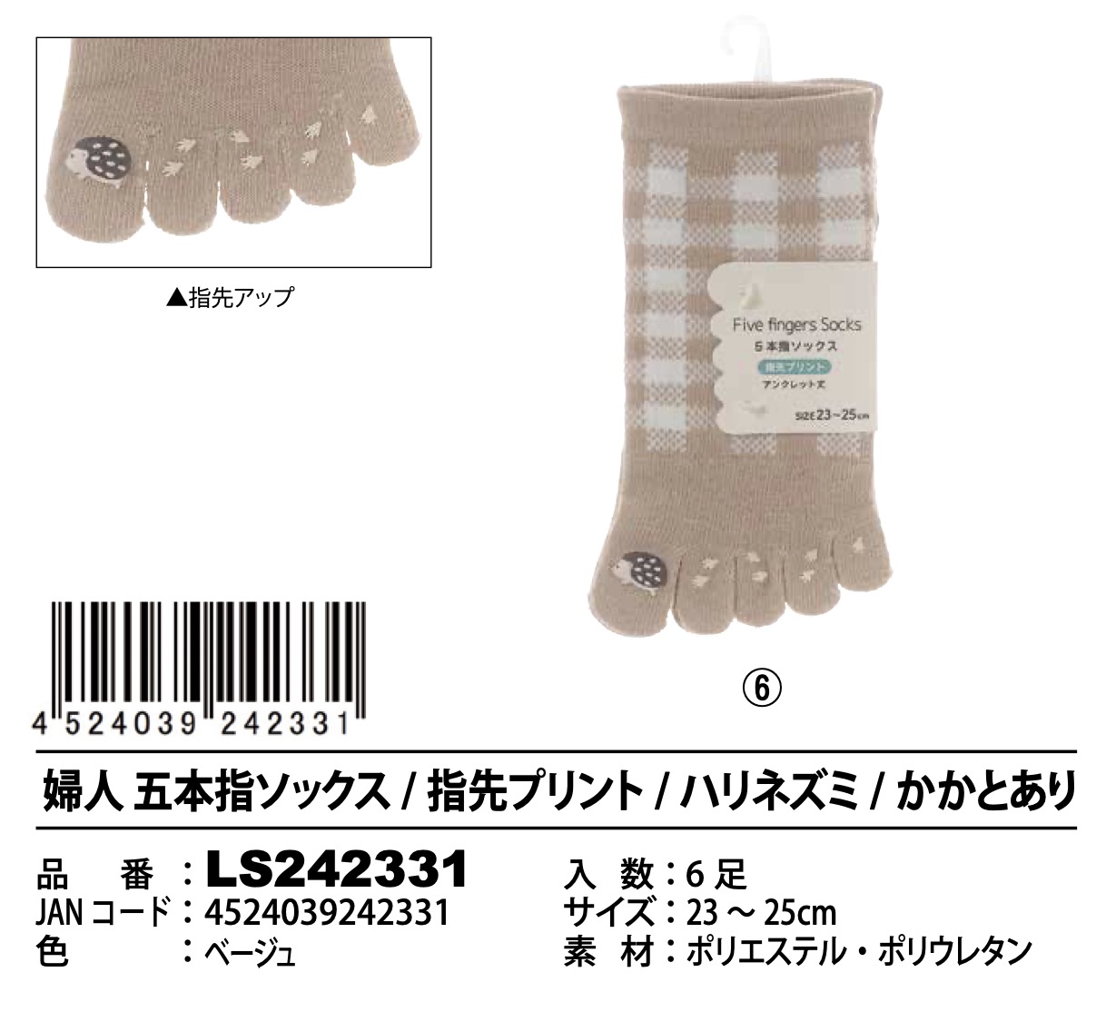 2.はりねずみ柄(かかとあり) LS242331