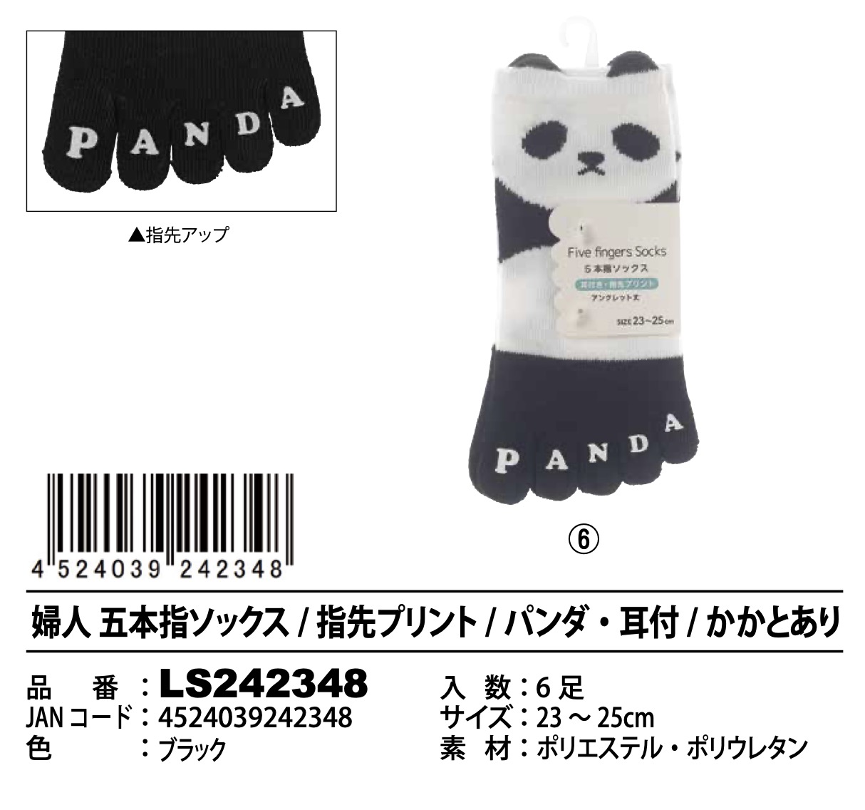 3.パンダ柄耳付き(かかとあり) LS242348