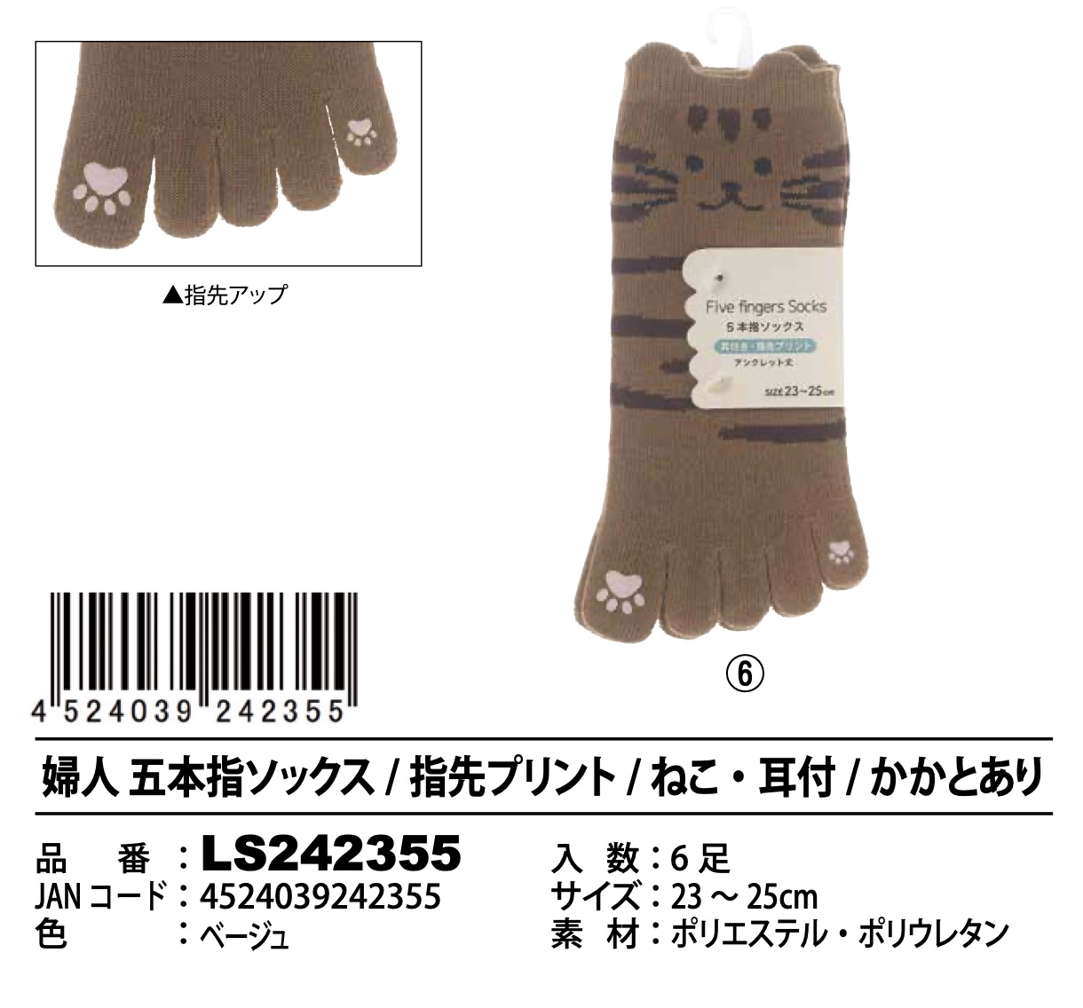 4.ねこ柄(かかとあり) LS242355