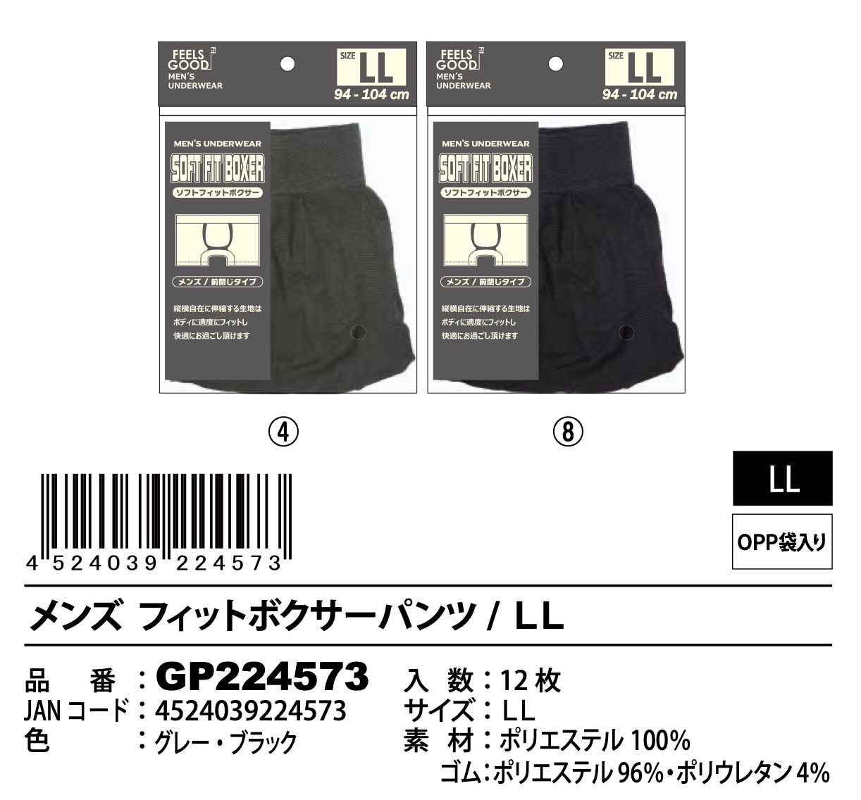 メンズ フィットボクサーパンツ 3サイズ120枚入り