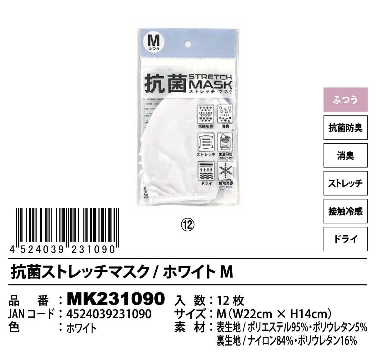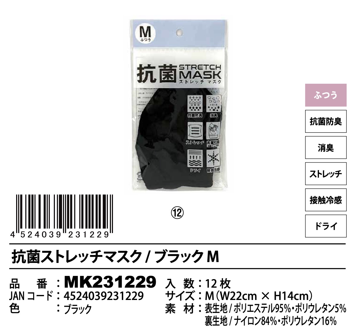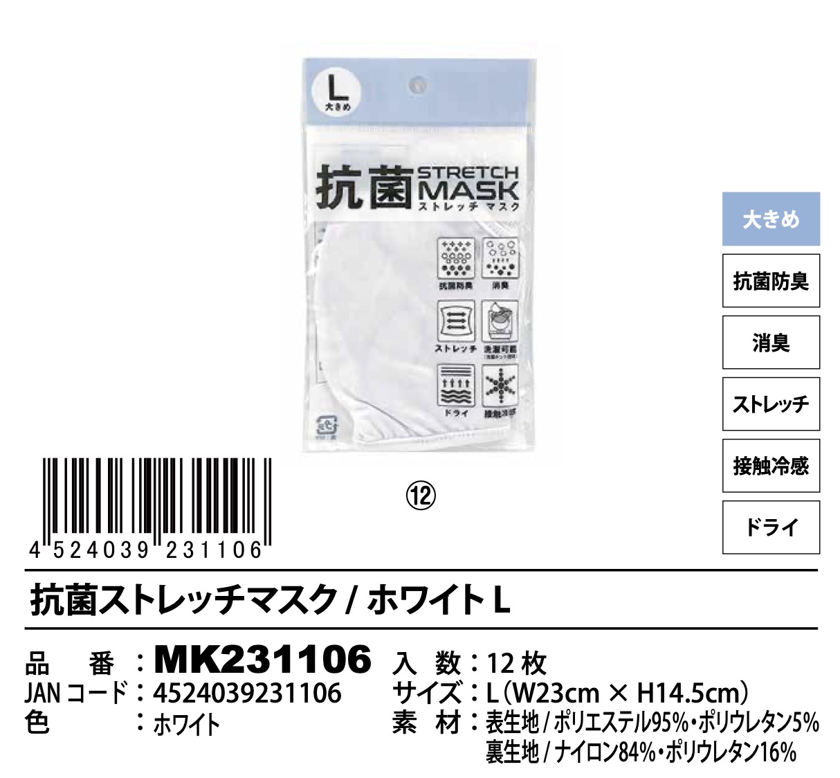 抗菌ストレッチマスク 2色3サイズ 120枚入り