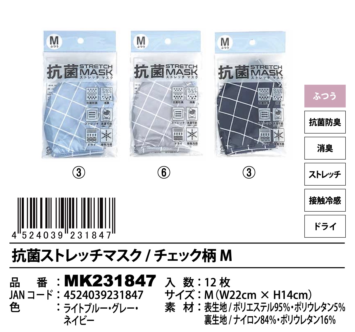 抗菌ストレッチマスク 4柄 120枚入り