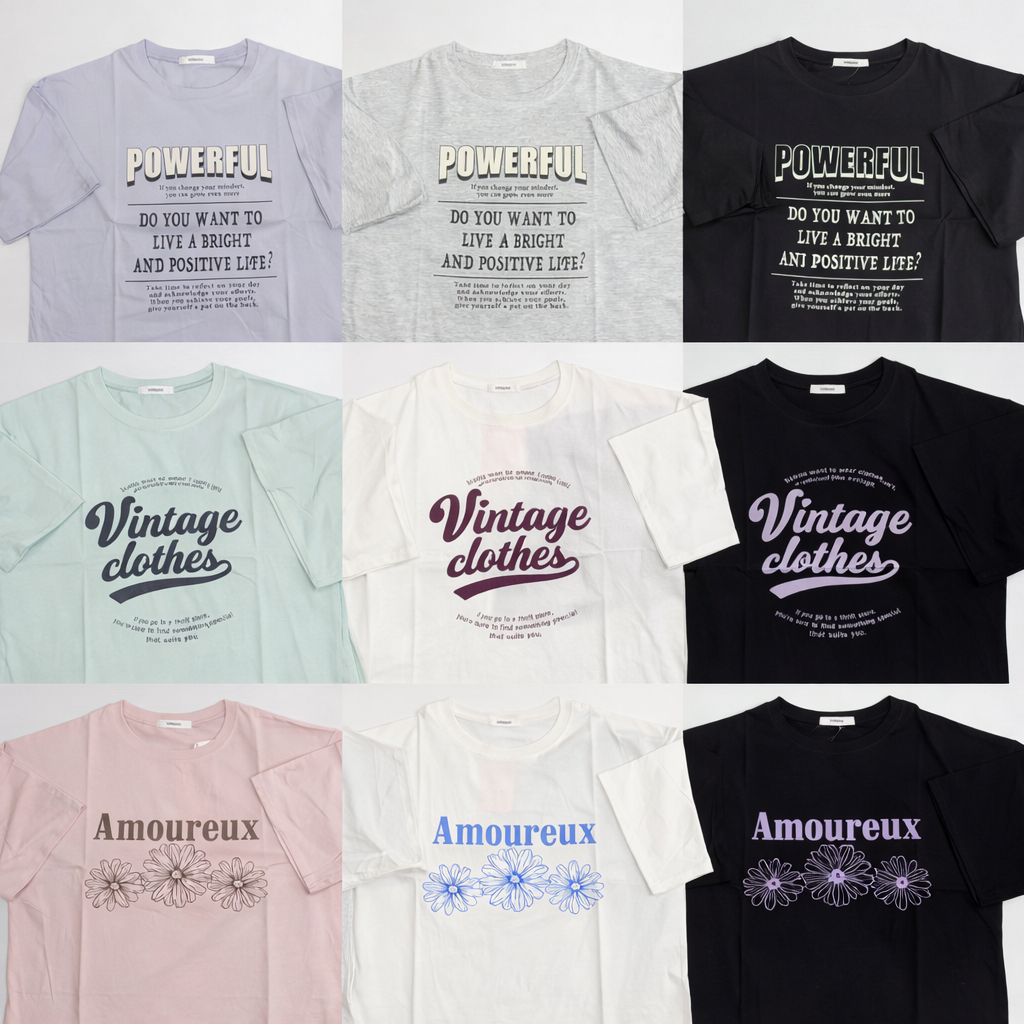 天竺半袖ワイドTシャツ (B) プリント5柄 2サイズセット