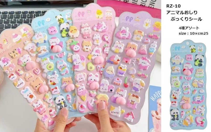 アニマルおしりぷっくりシール 全4~6種アソート 480枚入り 6972823630570・6521359542132