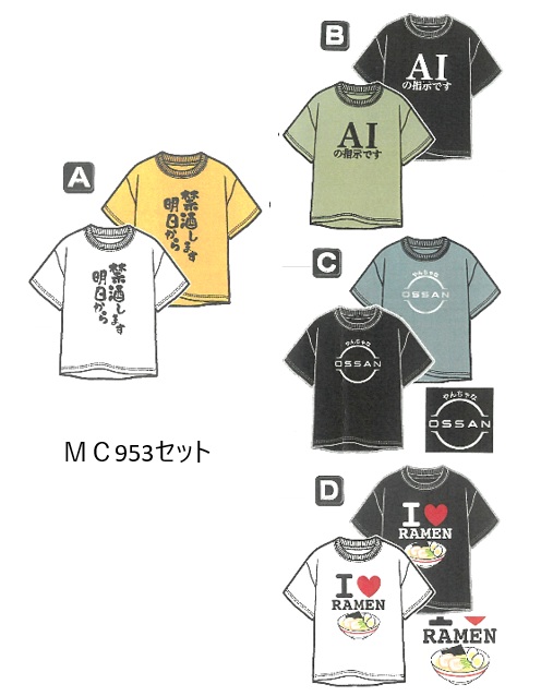 笑time プリント入りTシャツ 全4柄アソート 24枚入り MC951・MC952・MC953・MC954