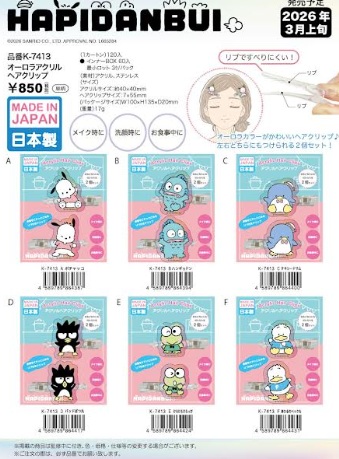 日本製 サンリオキャラクターズ/はぴだんぶい オーロラ アクリルヘアクリップ 全6種アソート 84個入 K-7412・K-7413