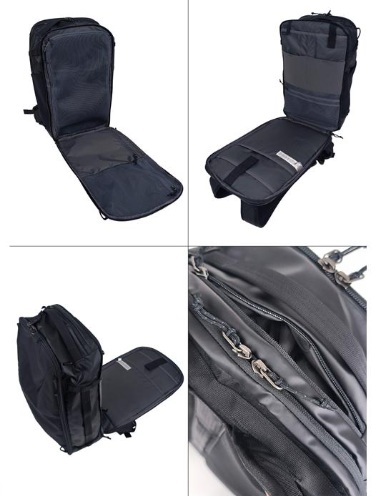 容量30リットルのミニ・MLCはリサイクル・TPU(サーモプラスチック・ポリウレタン)フィルムをラミネートしたリサイクル素材を使用。旅行に最適なソフトなバックパックは収納できるショルダーストラップを備え、肩掛け用にも使用できるパッド入りのヒップベルト付き。ダッフルバッグやブリーフケースとして使用する場合にはすべてのストラップを収納し、持ち運び用ハンドルを使用。