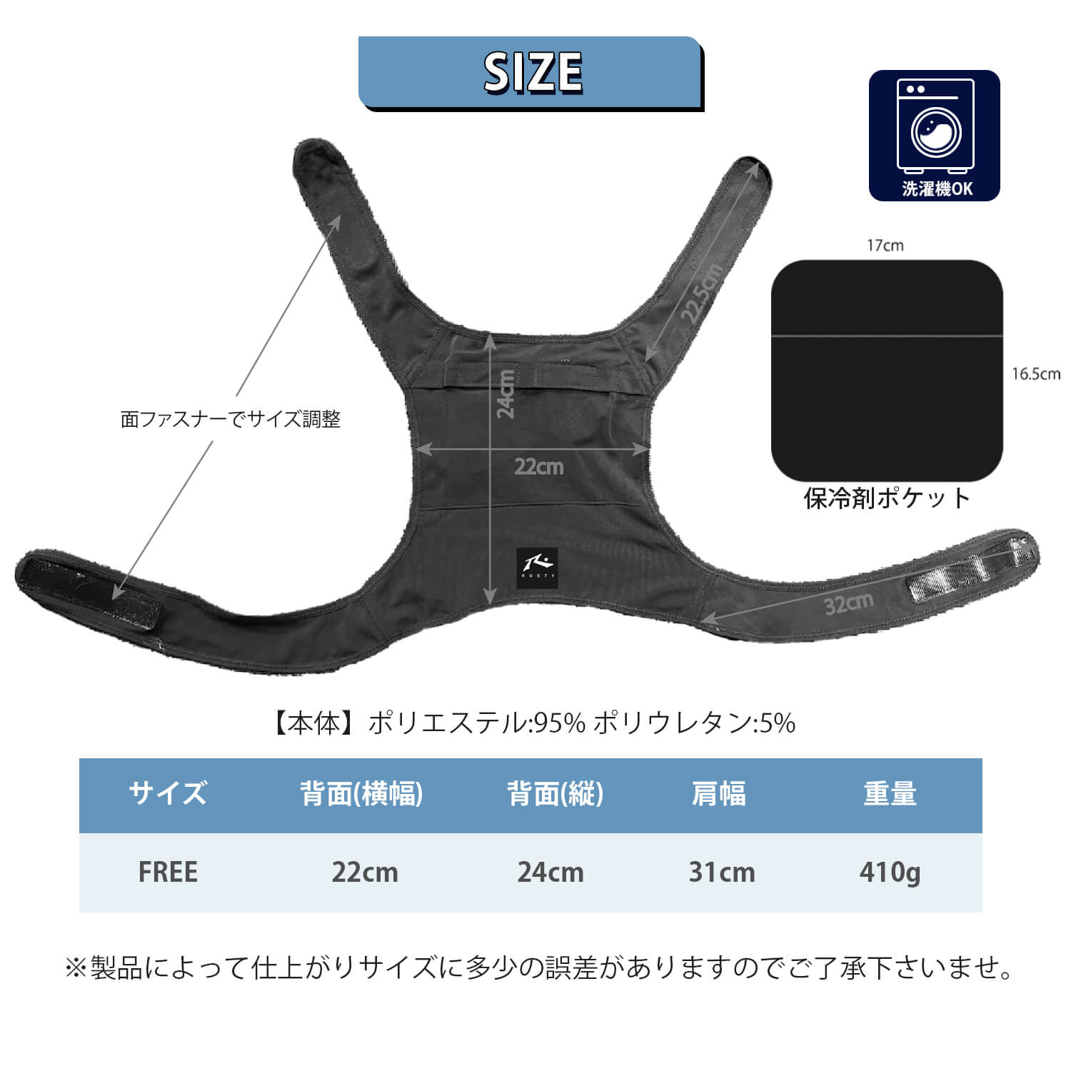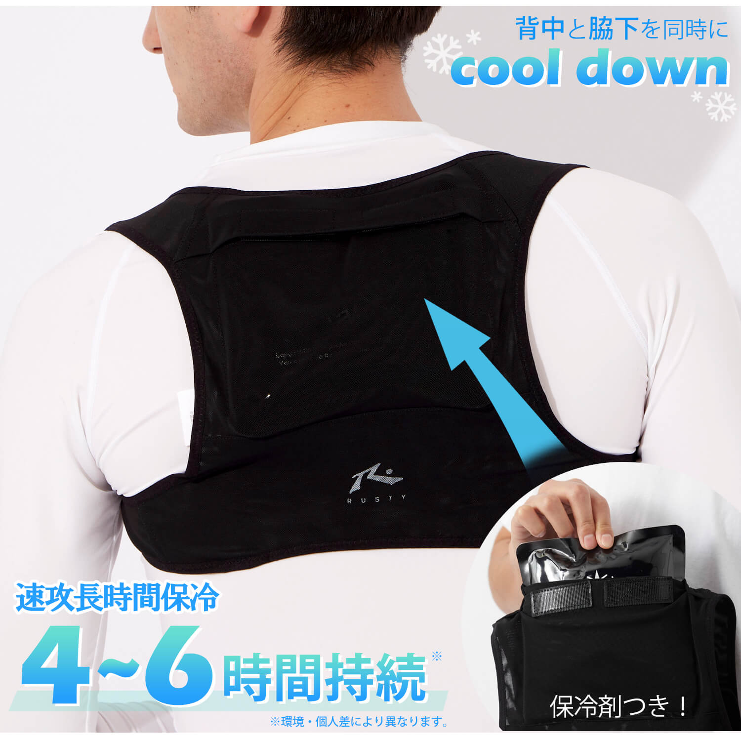 激安処分!RUSTY ラスティ 保冷剤ベスト 冷却ベスト アイスベスト 保冷剤付 吸汗速乾 接触冷感