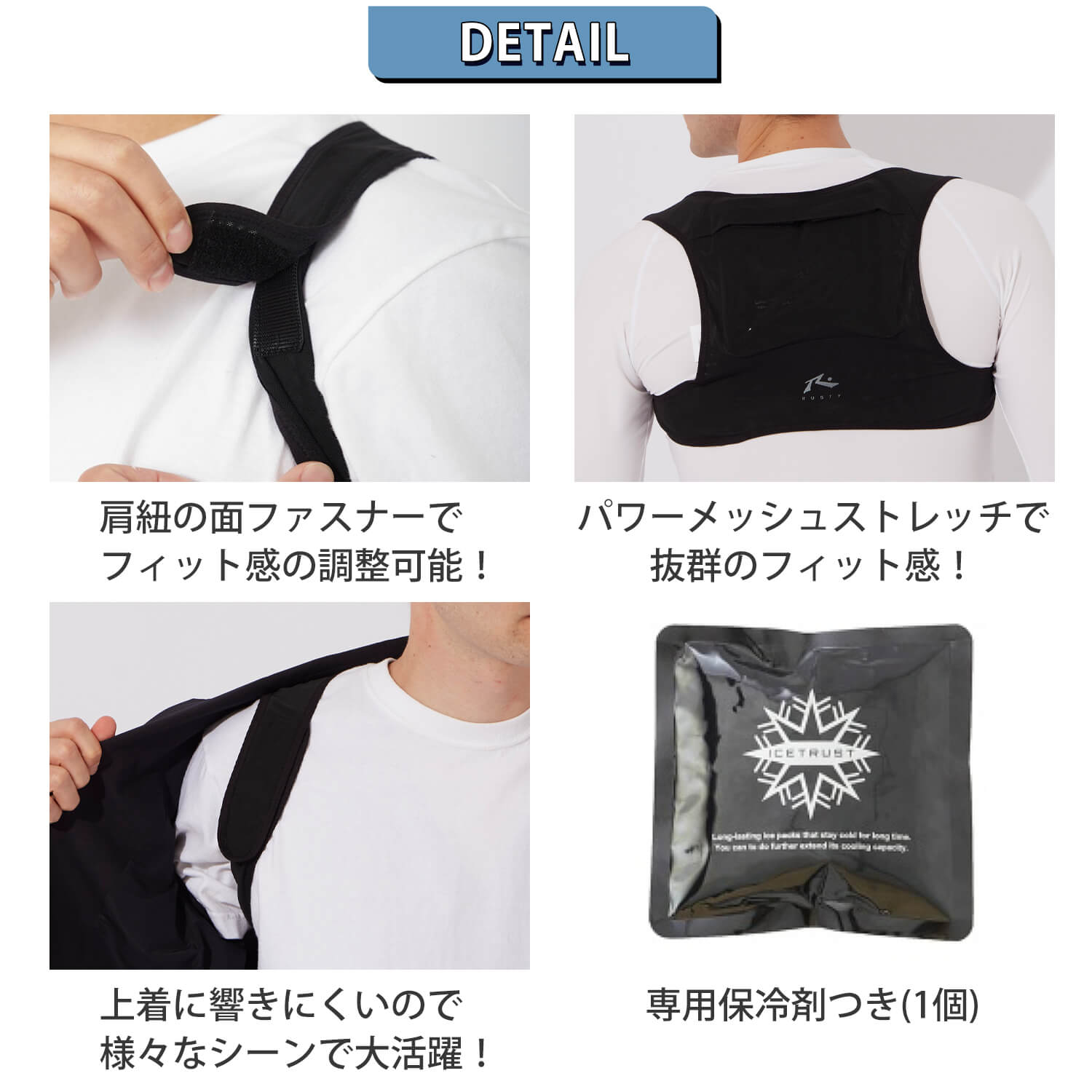 | RUSTY ラスティ 接触冷感 抗菌防臭 メッシュ ストレッチ 保冷剤付き アイストラスト 保冷剤ウェア ボディフィットベスト | |