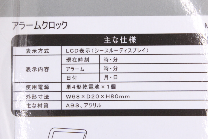 | 機能 | 時刻・日付表示(1990年~2090年) アラーム機能 シースルーディスプレイ |