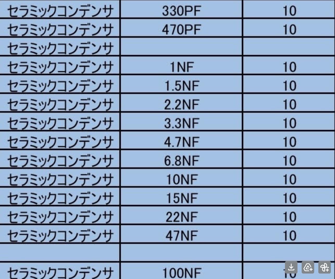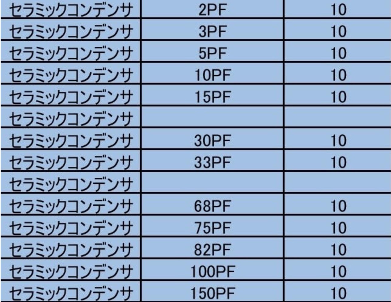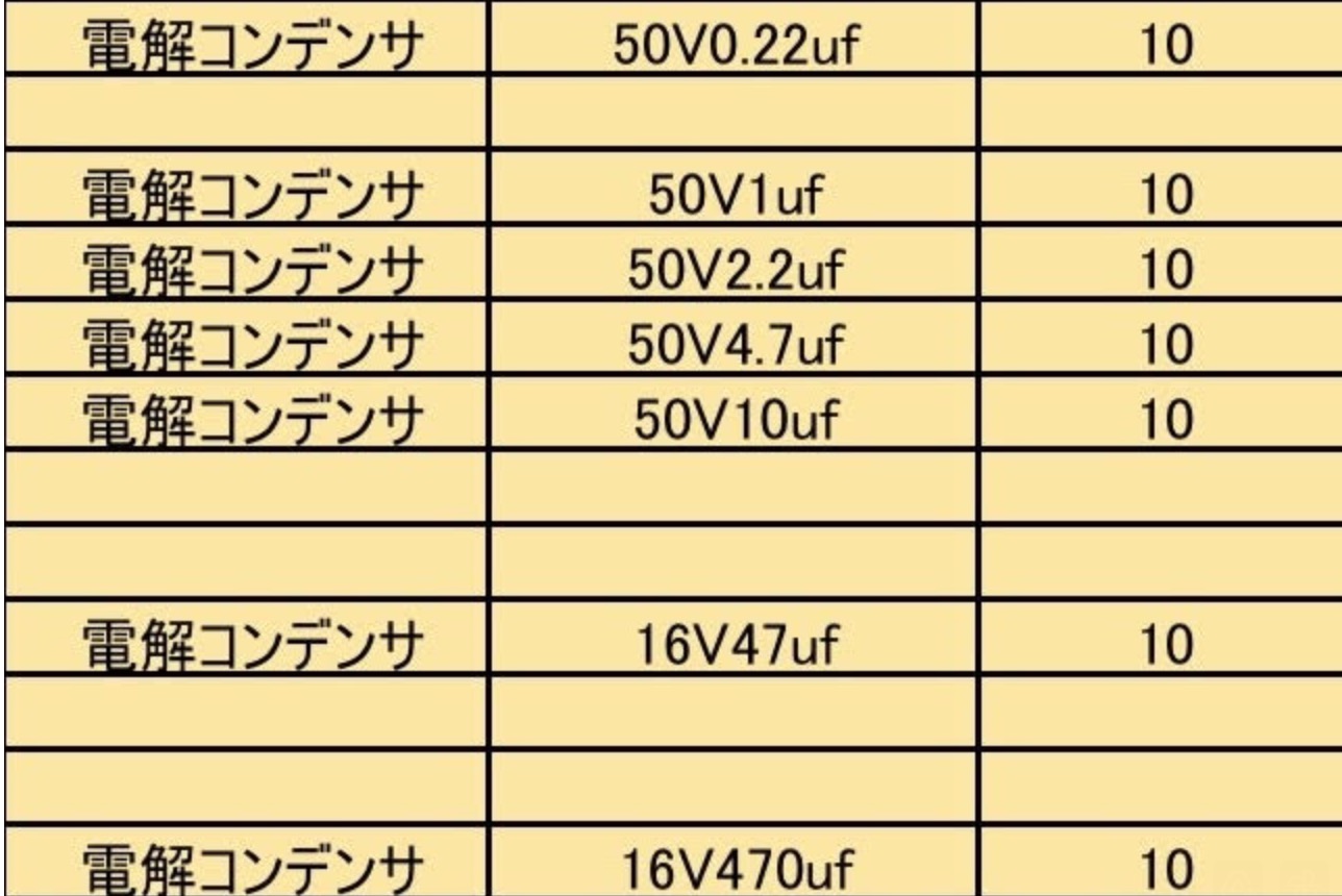 トランジスタ 130本 セラミックコンデンサ 250本 電解コンデンサ 70本 LED 100本 ダイオード 20本 抵抗器 580本